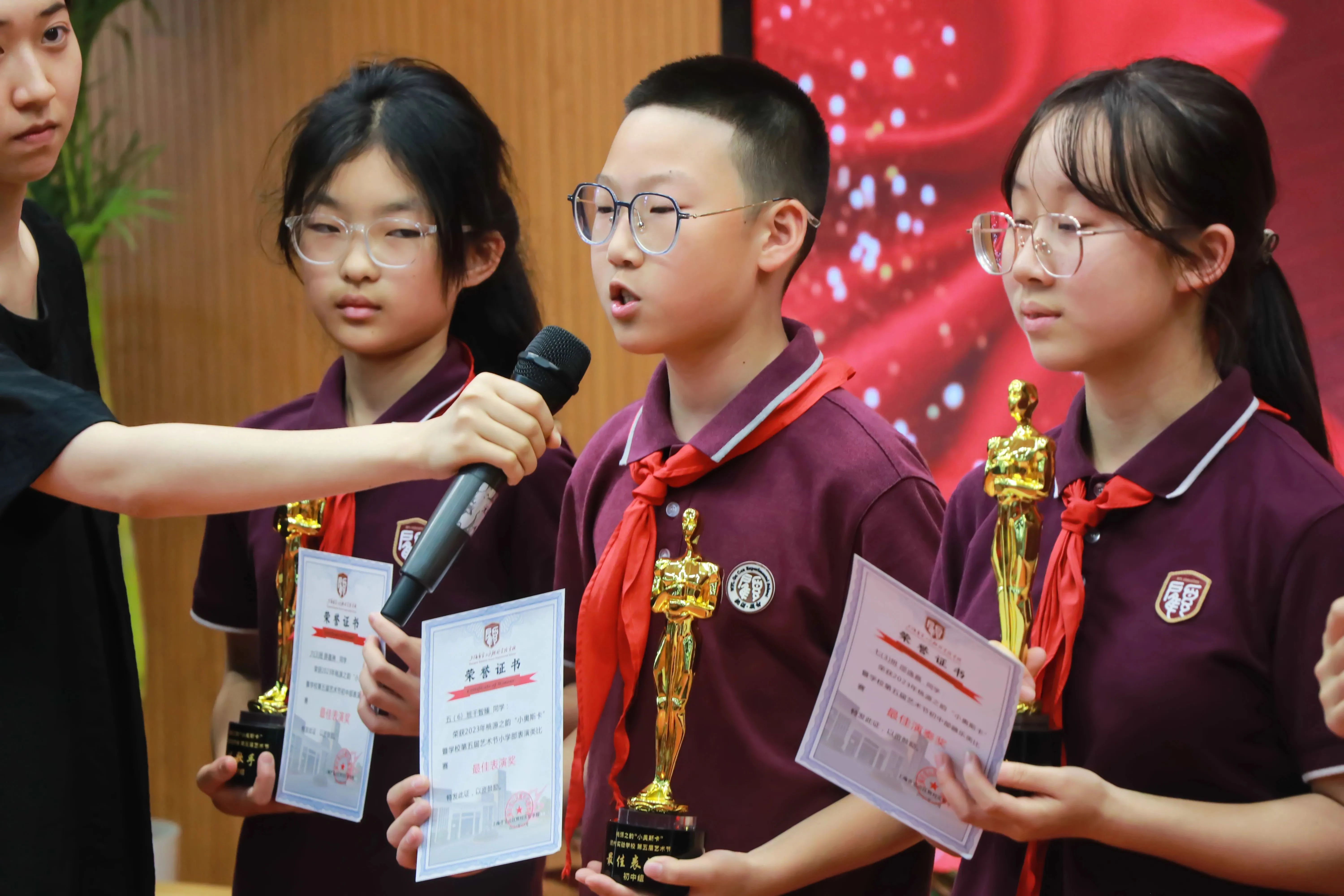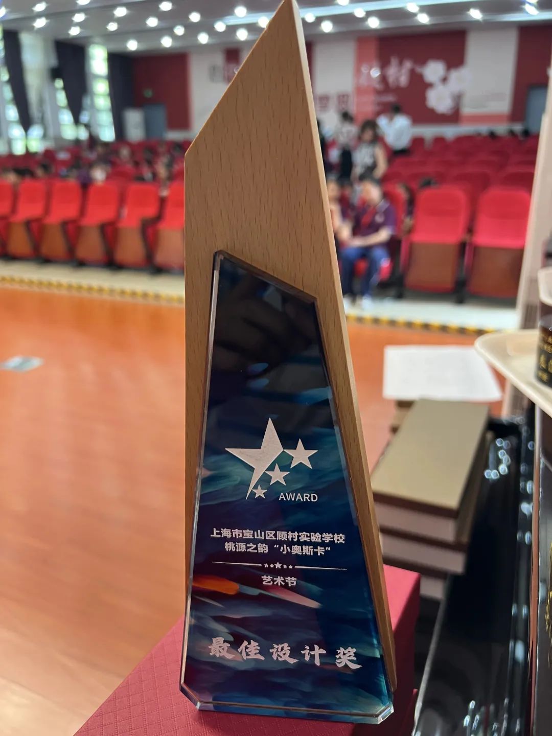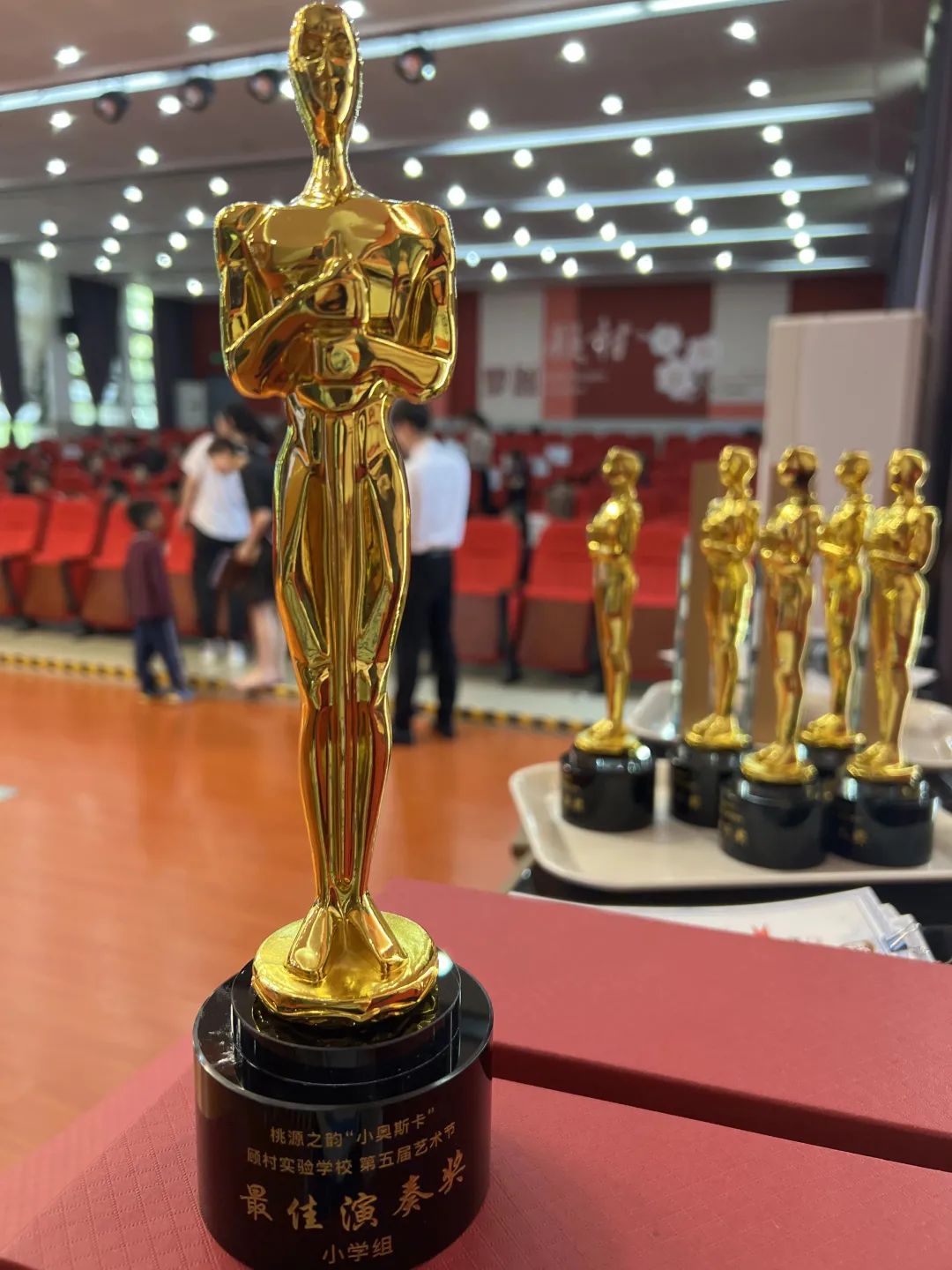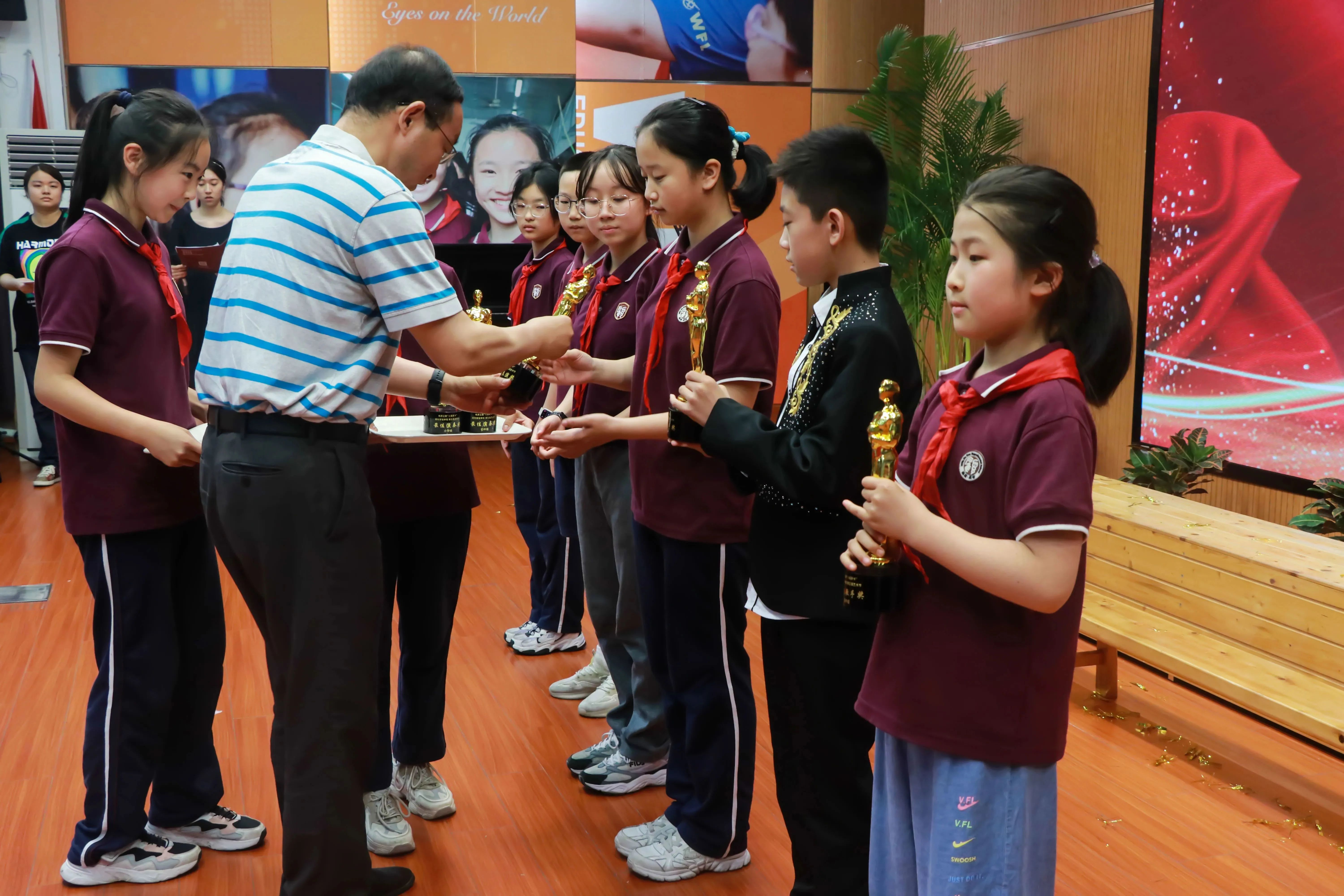 艺术节的颁奖典礼也是最令同学们期盼的。学校特意精心准备了切合主题的奖杯。