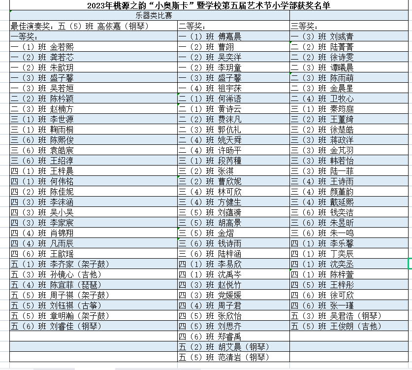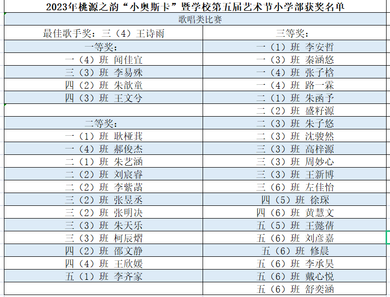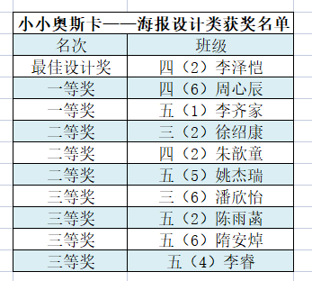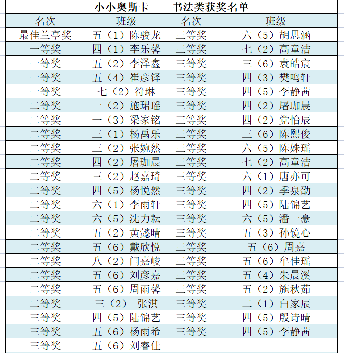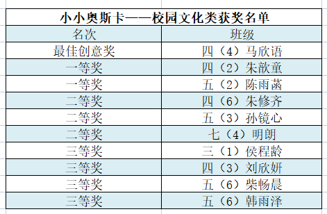 小学部获奖名单