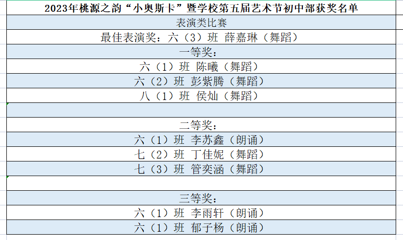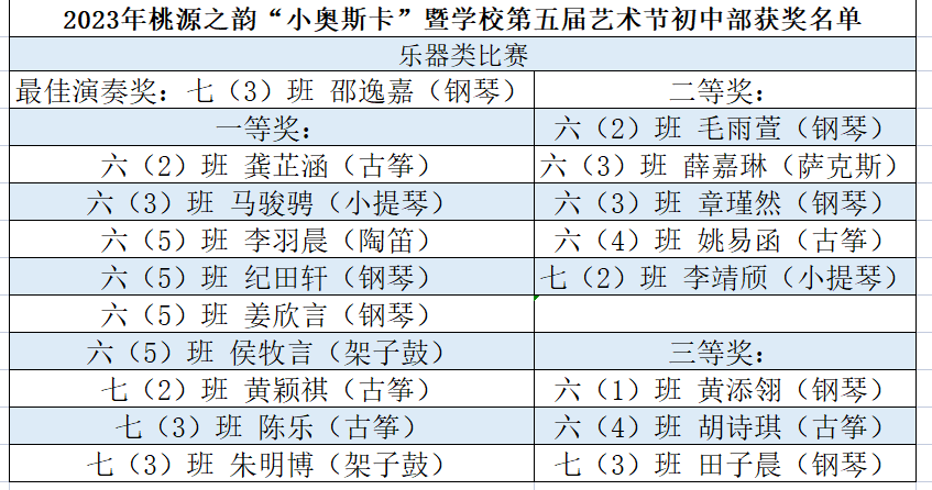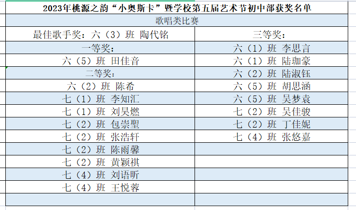初中部获奖名单