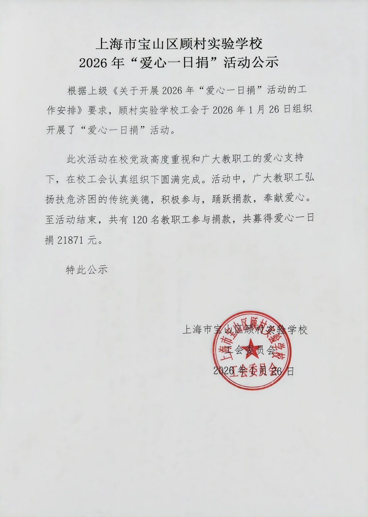本次“爱心一日捐”