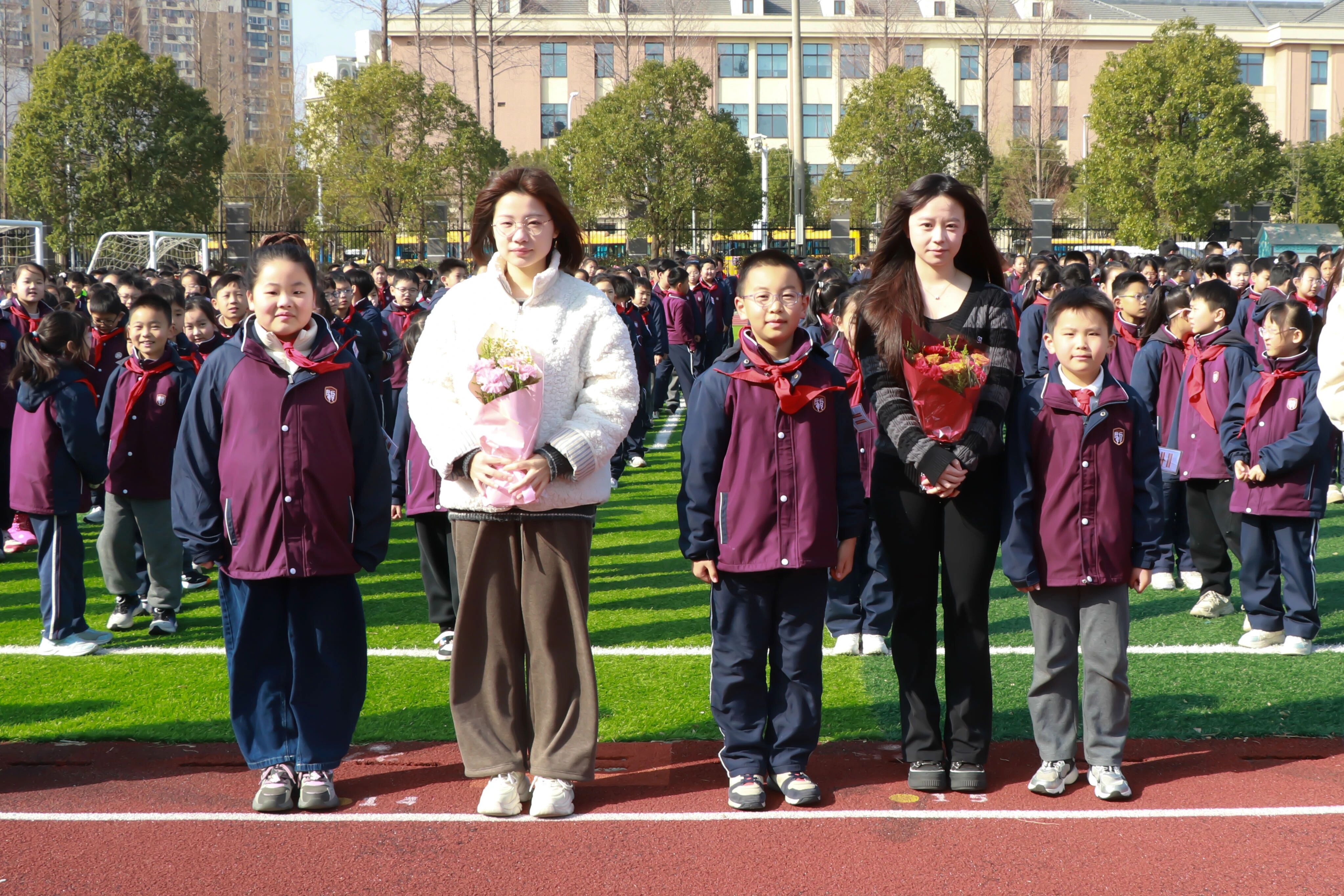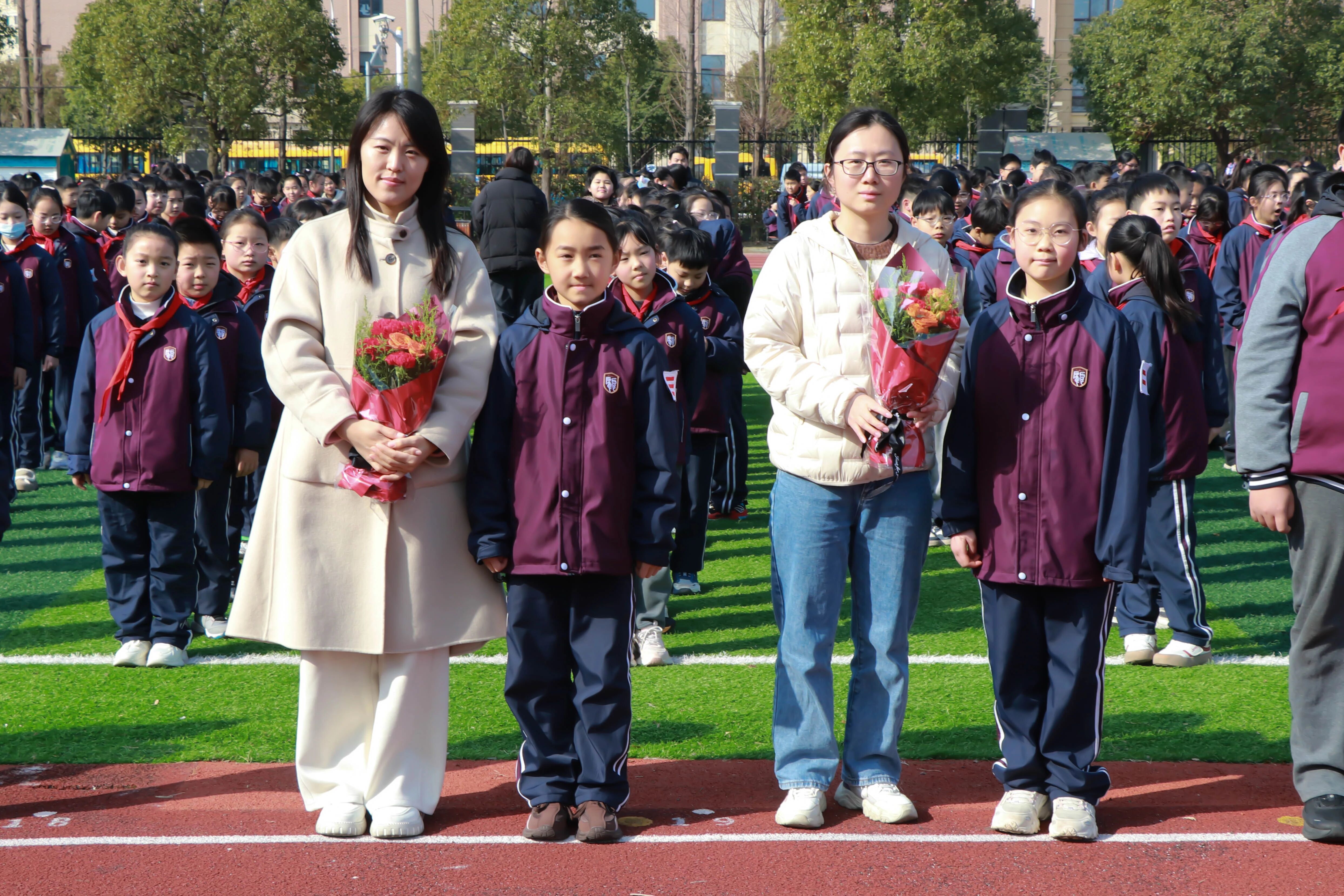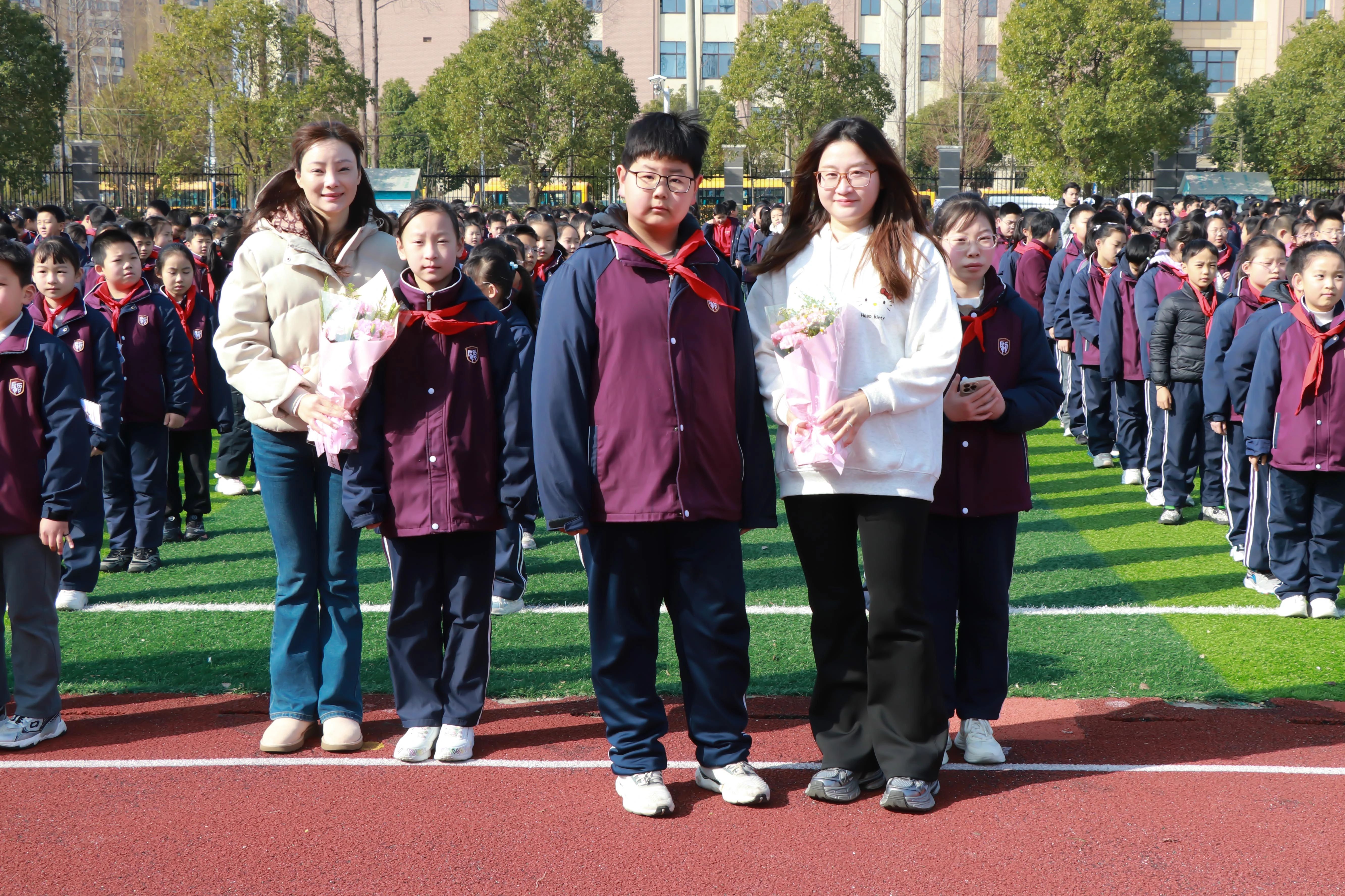 献上学校精心准备的鲜花